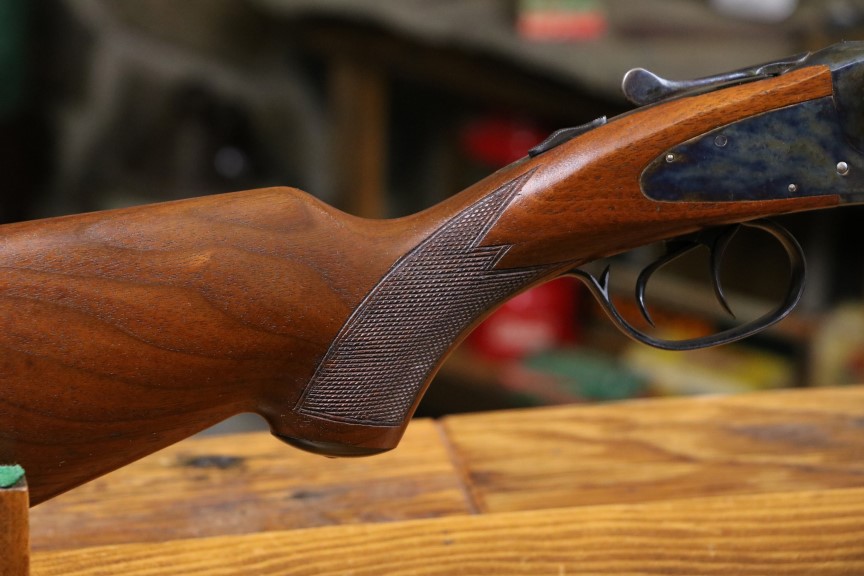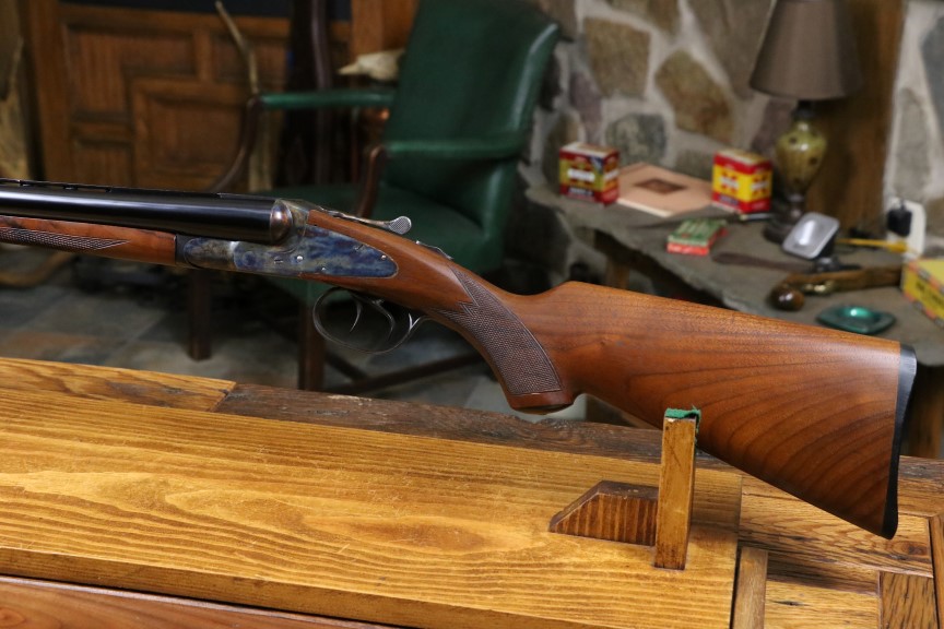 Marlin Made LC 12 Gauge Field grade shotgun made between 1968 and 1971 only. These were a limited run of real LC Smiths featuring real working side locks and a factory vent rib. The serial number of this one is FWM 57904. Condition is excellent to nearly new showing just a few and light handling marks. Nearly all of its original blue and receiver case color is present. Very pretty factory wood. The barrels are 28 inches with Improved Cylinder and Modified chokes. Length of pull is 14 inches. Drop at heel is 2 1/2 inches and drop at comb is 1 1/2 inches. Weight is 6 pounds 12 ounces. This is a great collectible LC Smith. There were only a little over 2000 of this model ever made and this is a TOP example.