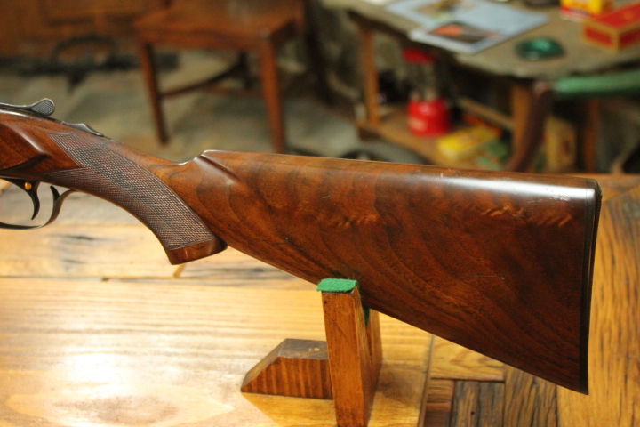 This is perhaps one of the BEST original condition Winchester Model 21 16 gauges in existence. Serial number 6399. Completely original and in at least 96% original condition overall. It features a single trigger, extractors and splinter fore end. Barrels are 28 choked mod & full and LOP is 14 from single trigger over original Winchester butt plate. DAH is 2 1/2 DAC is 1 3/4. Weight is 6lbs 12oz. Pretty wood and sharp checkering. This is a true original survivor model 21. If you collect minty UNRESTORED small bore 21s, this one is for you.
