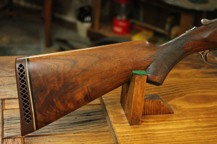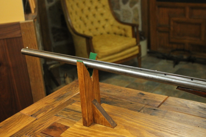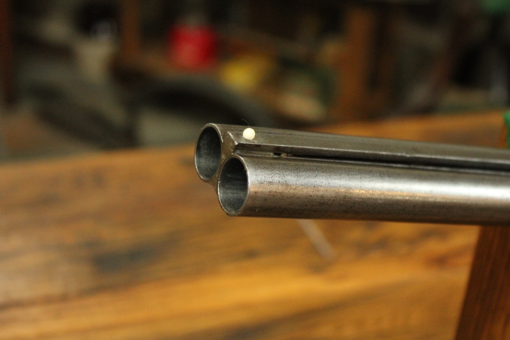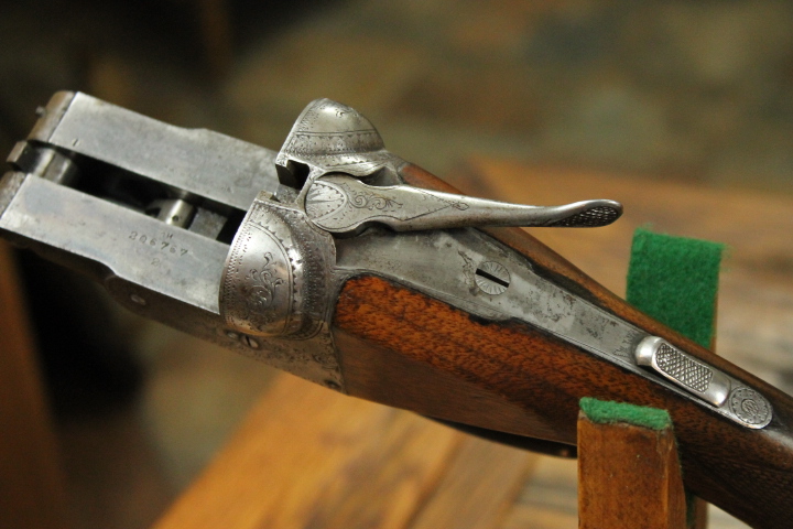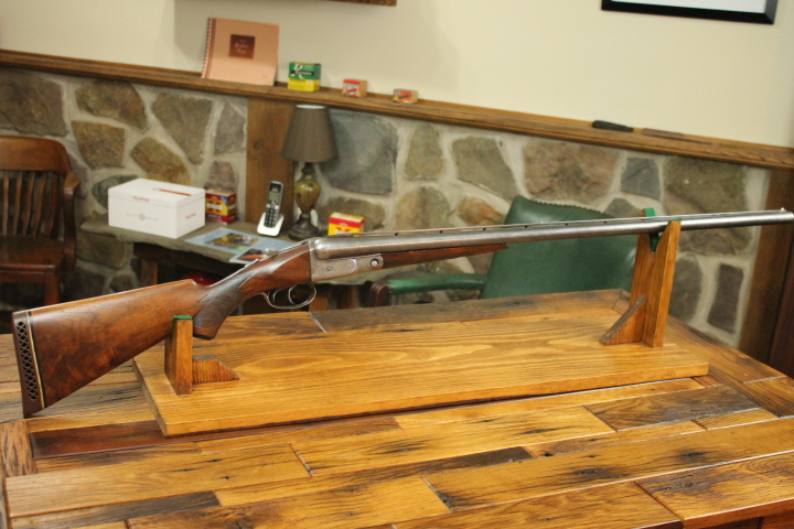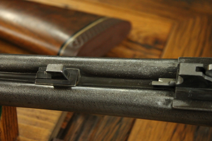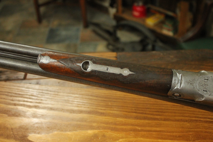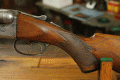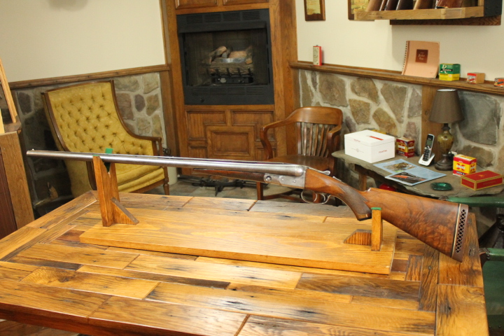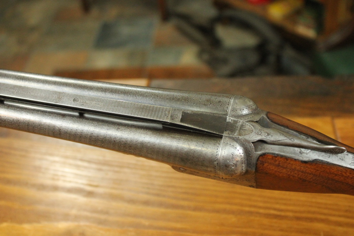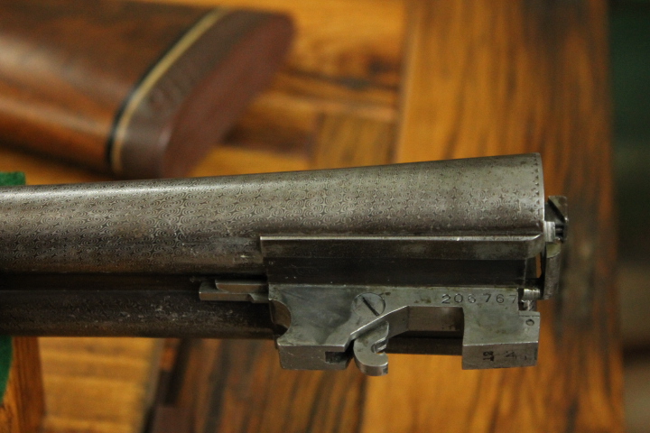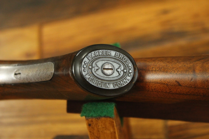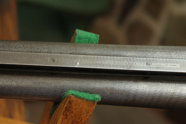 Offered is quite possibly an entirely unique Parker Bros. Shotgun. It is a GHE 12 Gauge with 32 inch barrels and factory Ventilated rib on Damascus barrels. Serial number is 206767. Made approx. 1924. Numbers are matching including beneath the vent rib between the first and second post. This is guaranteed an original vent rib Damscus Parker Shotgun. The shotgun does show use from over the years and there is little case color remaining. Excellent mechanically with nice damascus pattern, shiny bores and strong ejectors. Tight on face and on hinge. Nice screws and pretty wood. There is some wear to the fore end wood checkering. Twin Ivory beads. Chokes are full and improved modified. LOP is14 1/4 over an old White Line pad. DAH is 2 7/8 and DAC is 2. Weight is 8 lbs. If you collect rare Parker shotguns then this one is for you as it quite possible one of one.